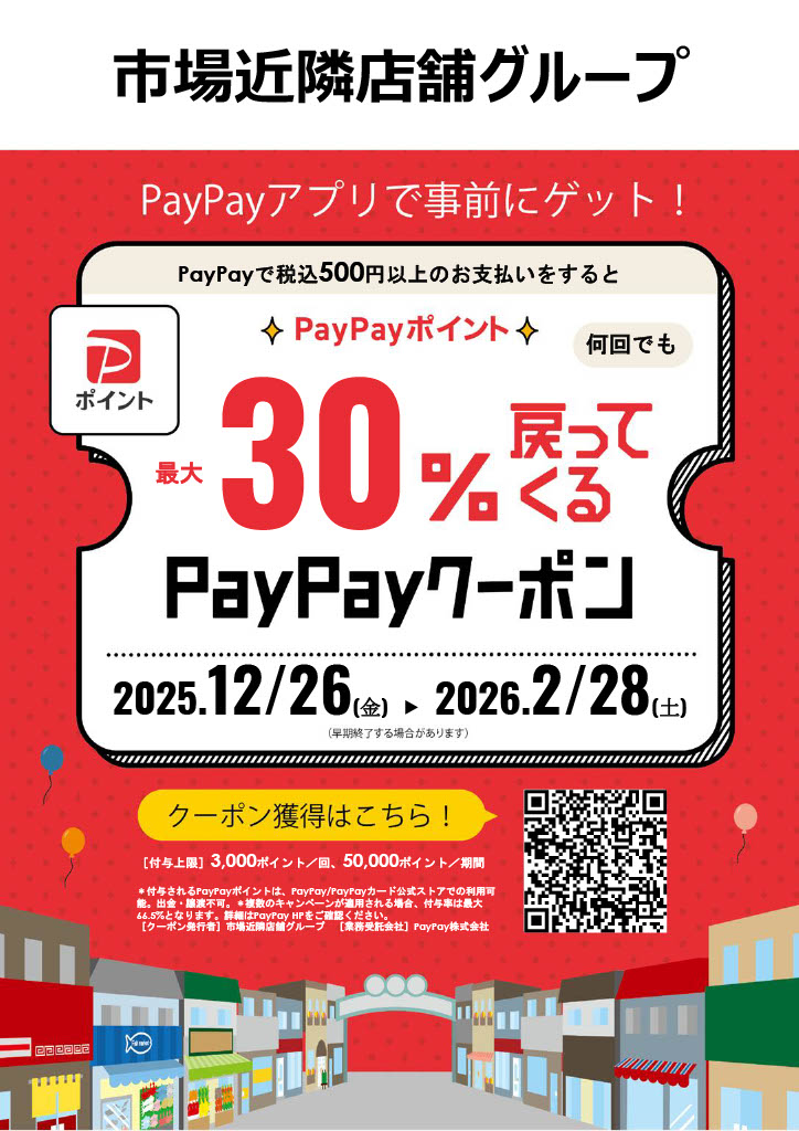 ペイペイ30%還元実施中、出前でもご利用いただけます、